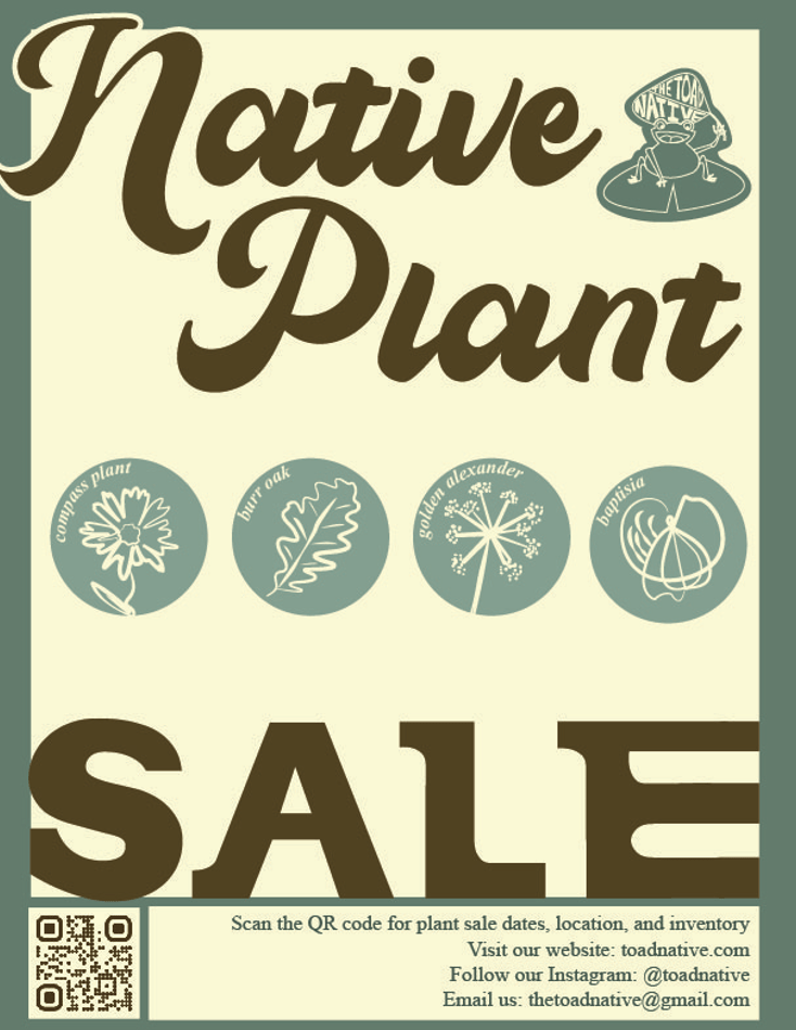 Contact: Contact us at our email thetoadnative@gmail.com if you have any questions or concerns. You can also contact us to reserve plants ahead of the sale or arrange to pick up plants at a later time.